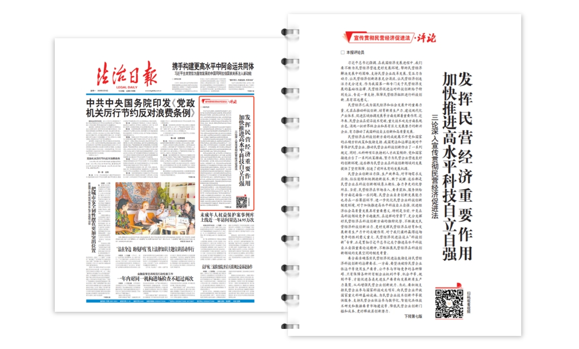 民營企業(yè)創(chuàng)新活力強(qiáng)、生產(chǎn)效率高、對(duì)市場(chǎng)需求反應(yīng)快,往往能夠積極擁抱新技術(shù)、敢于試錯(cuò)。這些都是民營企業(yè)在科技創(chuàng)新領(lǐng)域勇立潮頭、奮力爭(zhēng)先的優(yōu)勢(shì)所在。當(dāng)前,民營經(jīng)濟(jì)在市場(chǎng)準(zhǔn)入、要素獲取、服務(wù)供給等方面還面臨一些問題,民營企業(yè)自身創(chuàng)新發(fā)展能力也存在一些薄弱環(huán)節(jié)。進(jìn)一步優(yōu)化民營企業(yè)科技創(chuàng)新制度環(huán)境,對(duì)于加快推進(jìn)高水平科技自立自強(qiáng)、促進(jìn)經(jīng)濟(jì)社會(huì)高質(zhì)量發(fā)展具有重要意義。特別是當(dāng)前,中美在高科技領(lǐng)域競(jìng)爭(zhēng)日趨激烈,在這樣的背景下,充分發(fā)揮好民營經(jīng)濟(jì)在科技創(chuàng)新方面的獨(dú)特優(yōu)勢(shì),不斷激發(fā)民營經(jīng)濟(jì)科技創(chuàng)新活力,更好發(fā)揮民營經(jīng)濟(jì)在培育和發(fā)展新質(zhì)生產(chǎn)力中的關(guān)鍵作用,對(duì)于我們最終贏得這場(chǎng)競(jìng)爭(zhēng)的勝利意義重大。民營經(jīng)濟(jì)促進(jìn)法設(shè)立“科技創(chuàng)新”專章,正是貫徹習(xí)近平總書記關(guān)于推進(jìn)高水平科技自立自強(qiáng)重要論述精神、不斷拓展民營經(jīng)濟(jì)在科技創(chuàng)新領(lǐng)域的發(fā)展空間的制度考量。
