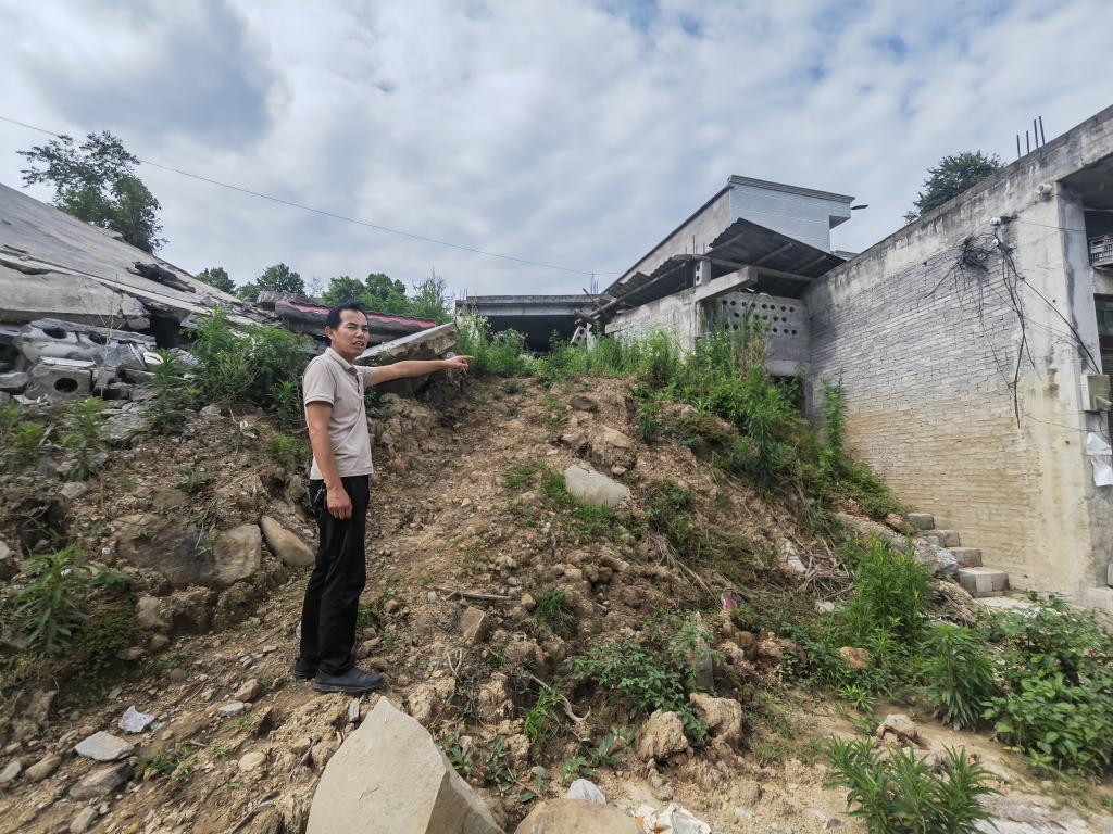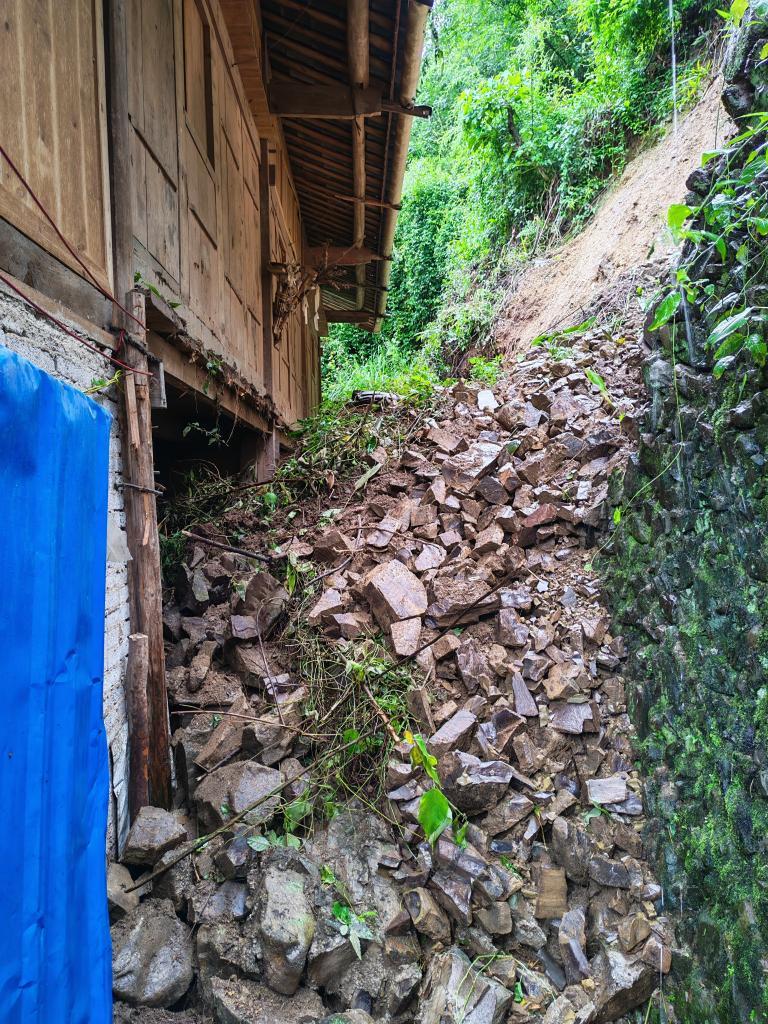 2025年5月28日,貴州丹寨縣南皋鄉(xiāng)烏皋村三組因強降雨發(fā)生山體滑坡,造成群眾房屋損毀。(受訪者供圖)