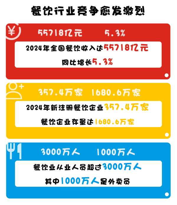 餐飲行業(yè)競爭激烈。數(shù)據(jù)顯示,截至2024年,我國餐飲企業(yè)數(shù)量已突破1680萬家,餐飲業(yè)從業(yè)人員超3000萬人,其中超1000萬人為外賣員。在此背景下,與外賣平臺合作成為不少商家順應(yīng)時代、立足行業(yè)的重要選擇。