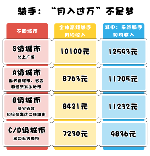 某外賣平臺2025年第一季度財報數(shù)據(jù)顯示,全國高頻騎手月均收入?yún)^(qū)間為7230元至10100元。在北上廣深等城市,技能更熟練的樂跑騎手收入優(yōu)勢更為明顯,月均可達(dá)12593元。