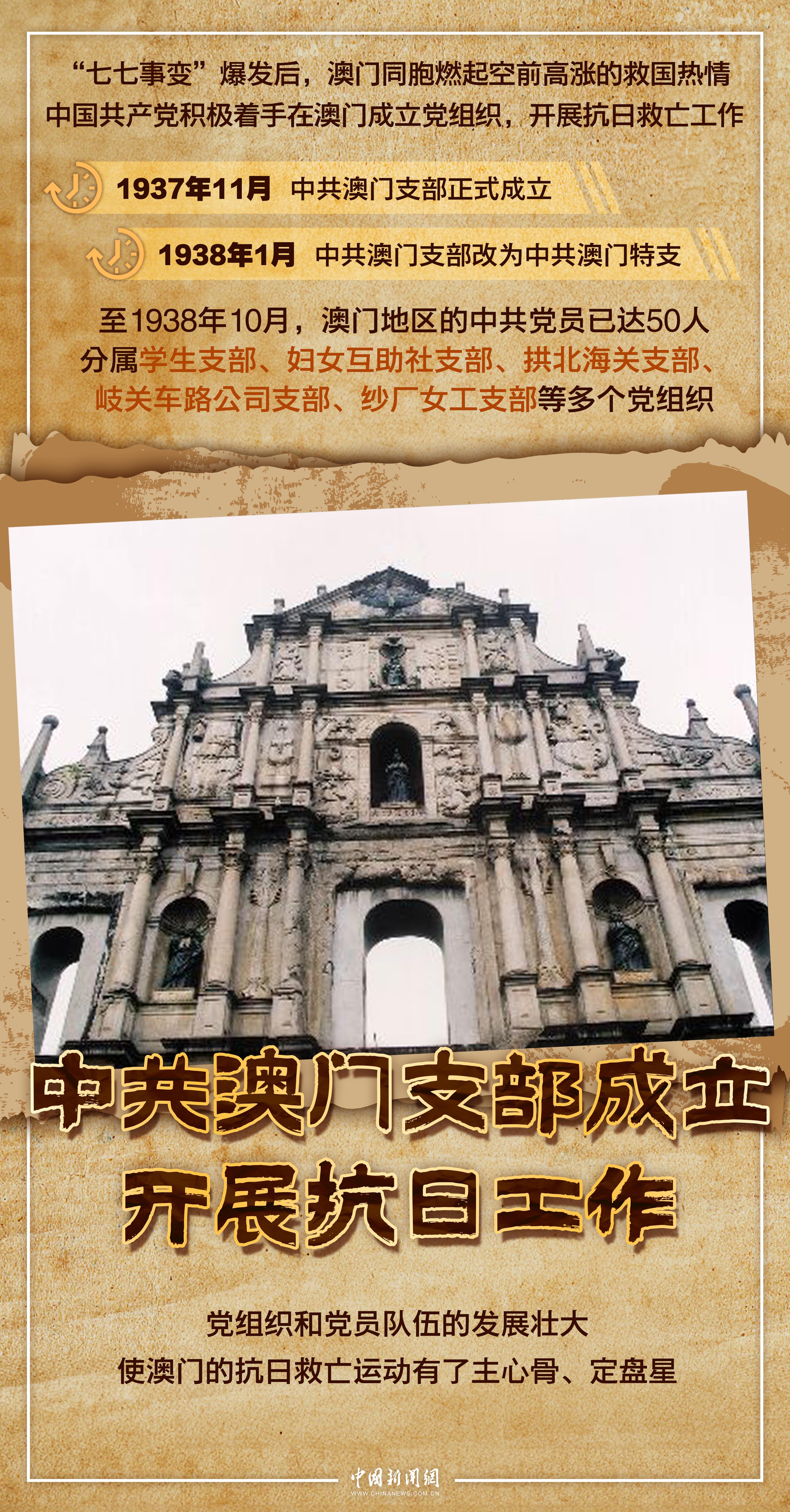 中新網(wǎng)北京8月21日電 2025年是中國人民抗日戰(zhàn)爭暨世界反法西斯戰(zhàn)爭勝利80周年??箲?zhàn)時期,港澳同胞心系祖國,以多元方式投身救國事業(yè)。香港憑借特殊的地理環(huán)境和政治環(huán)境,成為抗戰(zhàn)物資輸送樞紐;東江縱隊港九獨立大隊靈活開展敵后游擊戰(zhàn)爭;營救愛國民主人士和文化界人士等。與此同時,中國共產(chǎn)黨積極著手在澳門成立、擴大黨組織,成為澳門同胞抗日救亡運動的可靠主心骨。