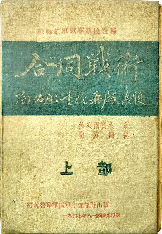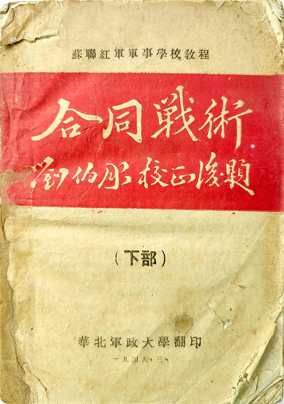 《合同戰(zhàn)術(shù)》,蘇聯(lián)紅軍軍事學(xué)校教程,系統(tǒng)論述多兵種戰(zhàn)斗特性和協(xié)同作戰(zhàn),是劉伯承等人著眼于人民軍隊未來戰(zhàn)術(shù)的發(fā)展,在戰(zhàn)斗間隙精心翻譯出來的。