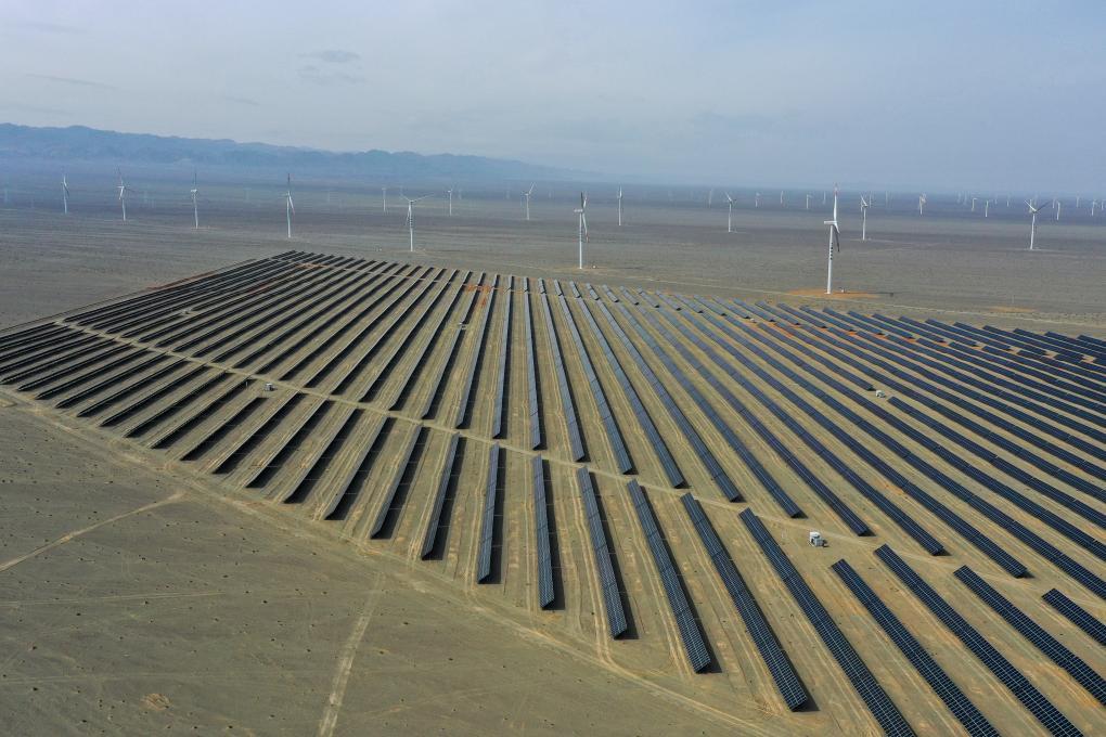 一望無垠的新疆戈壁上,逾百米高風(fēng)機的葉片緩緩轉(zhuǎn)動,連綿的光伏板在陽光下“漾”起粼粼光紋,超低排放的火電機組平穩(wěn)運轉(zhuǎn),與風(fēng)光能源協(xié)同運行。
