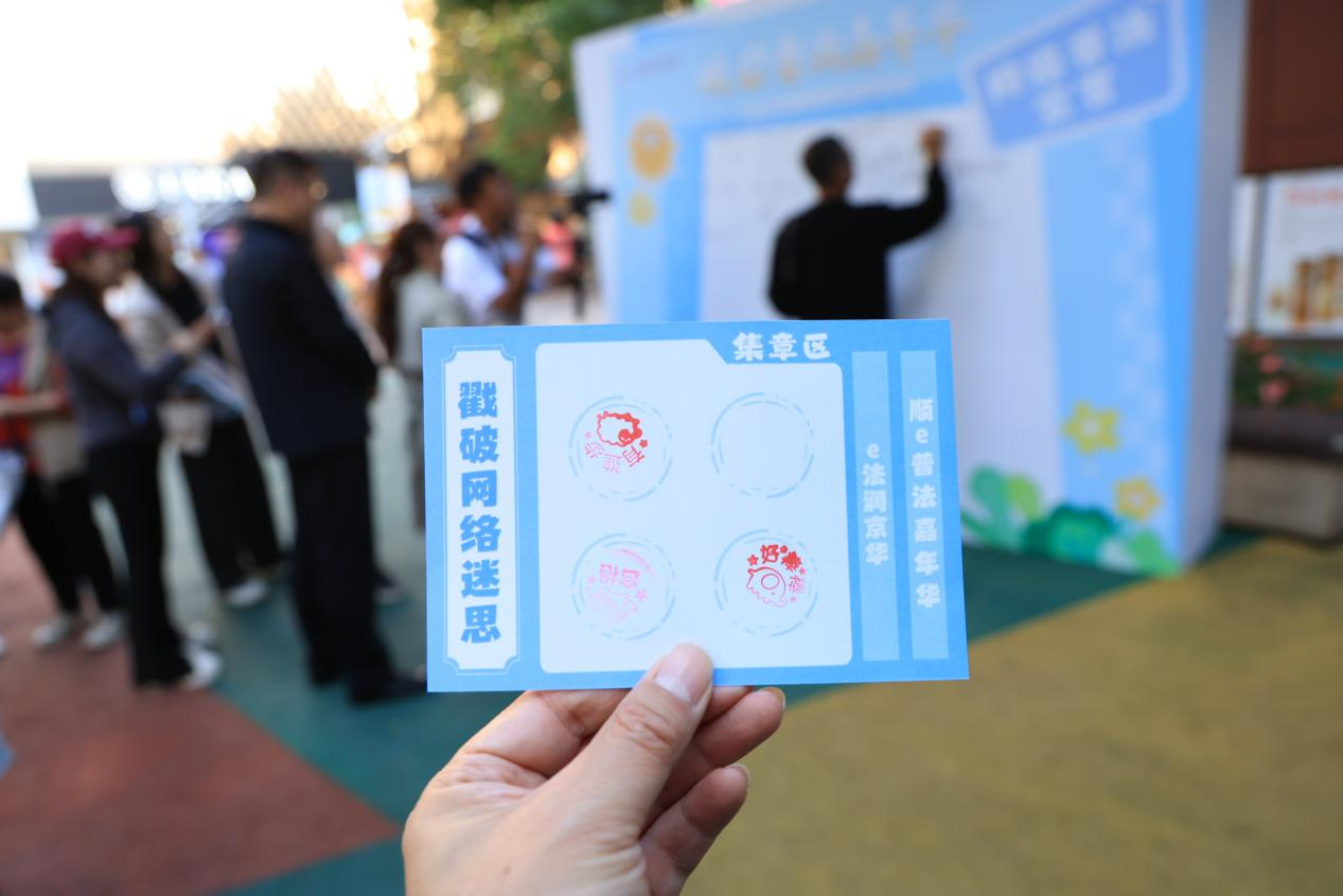 10月14日,“順e普法嘉年華”網(wǎng)絡(luò)普法活動(dòng)在北京市順義區(qū)祥云小鎮(zhèn)文旅街區(qū)啟幕。“網(wǎng)購(gòu)維權(quán)小屋”前,市民們正駐足答題;“法治飛行棋”區(qū)域內(nèi),游客們圍在彩色棋盤旁躍躍欲試。這場(chǎng)將網(wǎng)絡(luò)普法融入休閑生活的特色活動(dòng),讓法治知識(shí)悄然傳播。