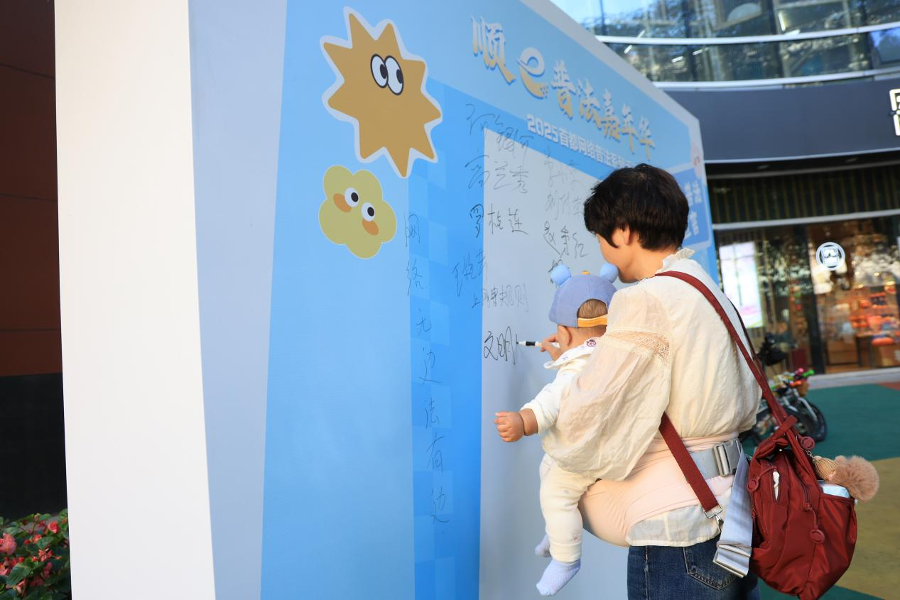 “e言e行皆風(fēng)景,e舉e動(dòng)講文明”“清朗網(wǎng)絡(luò)風(fēng),法治來(lái)護(hù)航”等一條條醒目標(biāo)語(yǔ)在“網(wǎng)絡(luò)普法宣言”墻上漸漸被填滿,市民朋友們手持“e法潤(rùn)京華”“順e普法嘉年華”主題KT板合影留念。在中國(guó)生活多年的外籍居民謝夫,特意趕來(lái)參與這場(chǎng)特別的“法治派對(duì)”,并在“網(wǎng)絡(luò)普法宣言”墻上寫(xiě)下自己的名字?!斑@樣的活動(dòng)很有意義,能讓更多人了解怎么依法上網(wǎng)?!敝x夫說(shuō)。