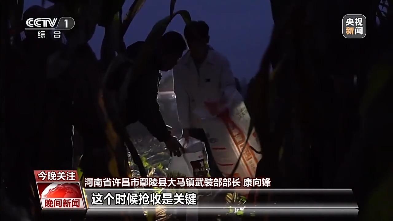 河南省許昌市鄢陵縣太平崗村村民 王進(jìn)中:黨員干部這么多人,黑了拿著礦燈,都沒停事,吃飯都沒吃飯,收莊稼、收玉米。