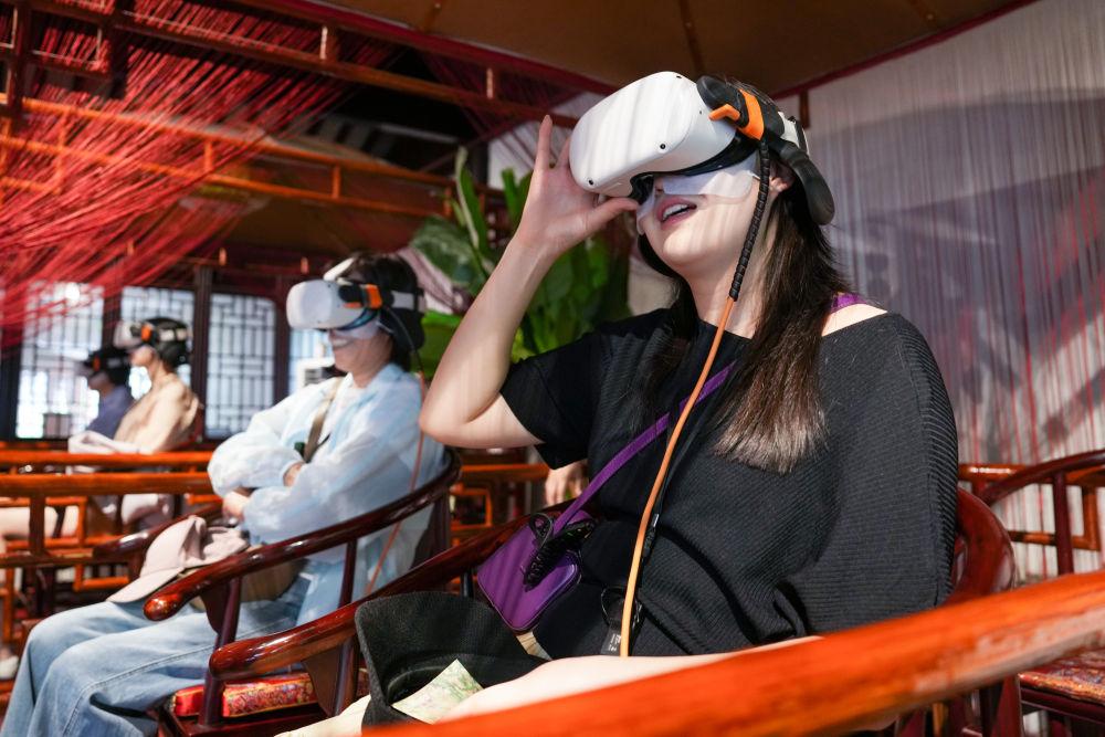 2025年5月18日,游客在江蘇蘇州拙政園體驗VR漫游。近年來,蘇州不斷推進“數(shù)字園林”建設(shè),在園林整體數(shù)字建模、園林要素數(shù)據(jù)庫建設(shè)、園林“元宇宙”應(yīng)用場景開發(fā)等方面進行探索,加快推動“數(shù)字園林”成果全民共享。