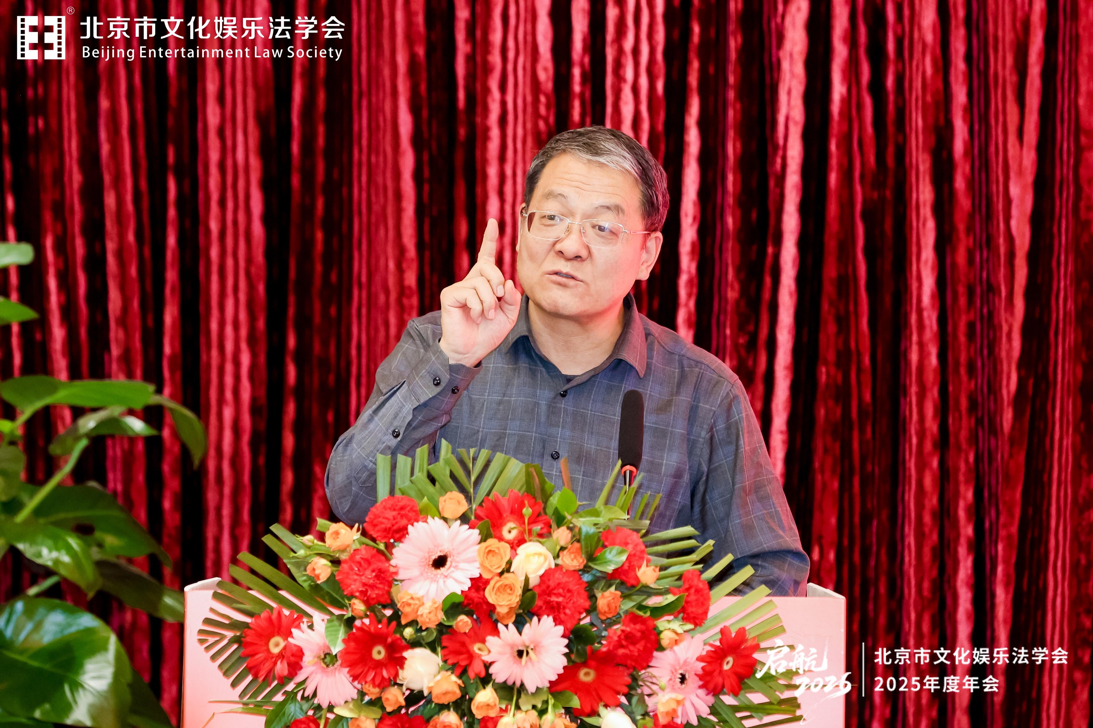 北京大學法學院教授、北京市文化娛樂法學會會長易繼明發(fā)表了題為“網絡文娛法治建設問題”的主旨發(fā)言。他從“海棠文學城”事件、“網絡游戲變身‘開設賭場’”案、“《紅色娘子軍》著作權糾紛”案等實際案例出發(fā),強調在新技術環(huán)境下,法治建設應貫徹習近平法治思想、習近平文化思想及習近平總書記關于知識產權工作的重要論述,既要回應產業(yè)現(xiàn)實,也要把握法治的方法和制度邊界。