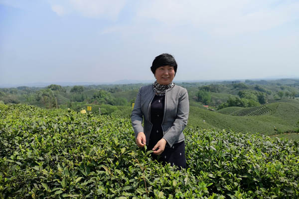 2019年,全國人大代表李秀香在河南信陽調(diào)研生態(tài)茶場。供圖/李秀香