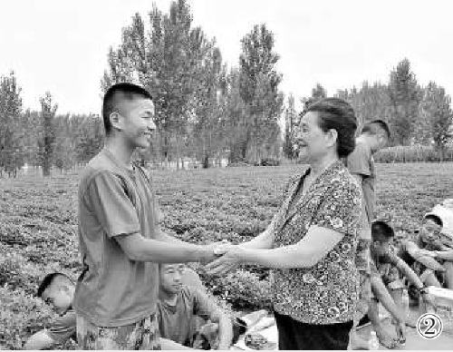 圖①:郭建華代表(右一)看望解放軍和武警官兵
