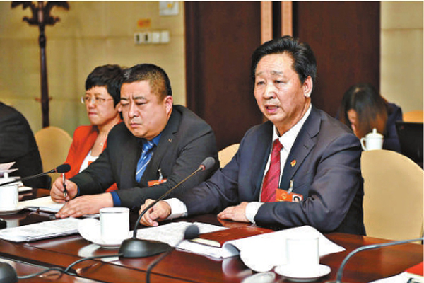 王士嶺(右一)在全國(guó)兩會(huì)上進(jìn)行小組發(fā)言