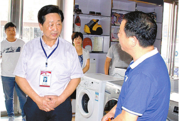 王士嶺(左二)走訪商戶,調(diào)研了解經(jīng)營(yíng)情況