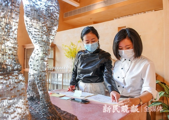 圖說:王芳在和同事交流工作。新民晚報記者 陶磊 攝(下同)