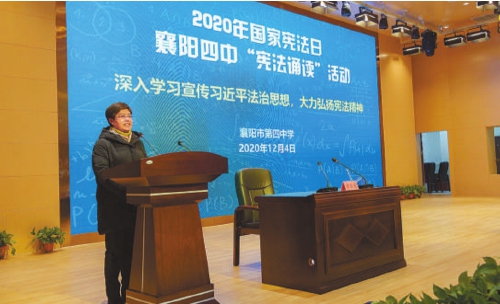 李靜在襄陽市第四中學(xué)舉辦的“憲法誦讀”活動(dòng)上發(fā)言