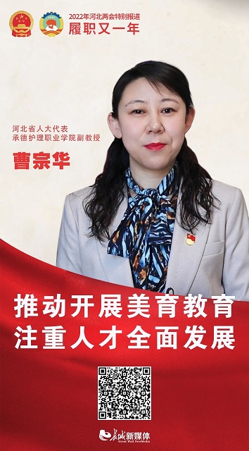 “作為一名職業(yè)院校的音樂教師,從教20余年,在工作中我發(fā)現(xiàn)學(xué)校里的學(xué)生非常喜歡藝術(shù)課程,課余時(shí)間也積極參加學(xué)校的社團(tuán)活動(dòng)、文藝演出。目前我國大力發(fā)展職業(yè)教育,社會(huì)上也急需德智體美勞全面發(fā)展的復(fù)合型人才,所以這次我準(zhǔn)備帶上‘兩會(huì)’的建議是‘切實(shí)加快推進(jìn)高等院校美育教育’?!焙颖笔∪舜蟠?、承德護(hù)理職業(yè)學(xué)院副教授曹宗華說。