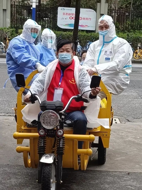 3月27日深夜,楊兆順的手機(jī)突然響起:“陽光建華城第二社區(qū)居委會干部全部隔離轉(zhuǎn)運(yùn),需要你馬上增援?!标柟饨ㄈA城第二社區(qū),常住人口近3000人。居委會干部來不及交接、塊長不認(rèn)識、樓組長不認(rèn)識……如果說紫藤苑的疫情防控是一場“陣地戰(zhàn)”,陽光建華城第二社區(qū)更像是一場“遭遇戰(zhàn)”。防控就是命令!3月28日凌晨,楊兆順就帶領(lǐng)工作組共8人趕到社區(qū),在對任務(wù)分工作了精細(xì)安排后,開始了工作。在基礎(chǔ)資料極其匱乏的情況下,楊兆順帶領(lǐng)工作組克服困難,在當(dāng)日中午12:00整完成了小區(qū)解封通行證發(fā)放的工作。下午,對一些封控樓組進(jìn)行了核酸檢測,接著,又繼續(xù)組織對小區(qū)居民進(jìn)行抗原自測,直到深夜22:15分才完成了任務(wù)。
