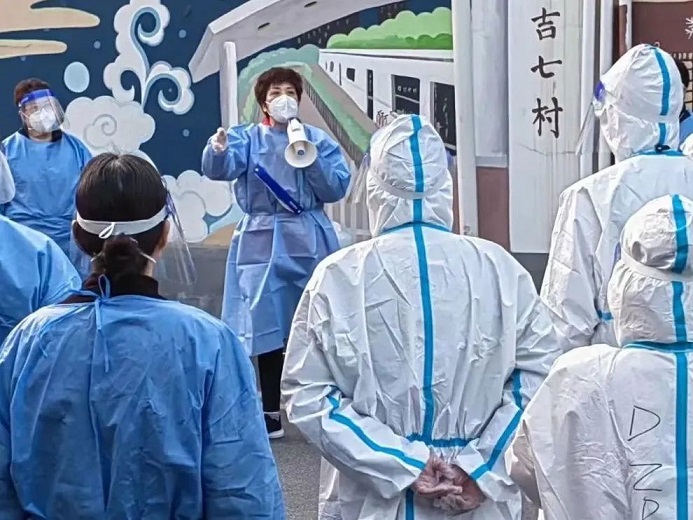 在第一次核酸檢測前,居委通宵討論檢測點位安排、樓棟檢測順序、人員行進路徑、工作人員分工甚至站位,并反復(fù)實地演練流程。檢測結(jié)束后,他們又就當(dāng)天的現(xiàn)場情況進行詳細討論,查找問題和不足,優(yōu)化完善工作方案和應(yīng)急預(yù)案。之后的多輪檢測,這個有著5500多居民的超大核酸檢測現(xiàn)場,每次都能做到安全、有序,這背后凝結(jié)著施菊和延七團隊的工作智慧和辛勤汗水。
