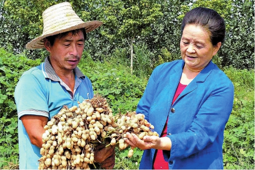 正值花生收獲季節(jié),郭建華(右)來(lái)到開(kāi)封市祥符區(qū)西姜寨鄉(xiāng),與農(nóng)民一起查看花生收成情況。