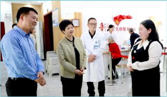 圖為全國人大代表藍景芬(左二)在浙江麗水景寧畬族自治縣大均鄉(xiāng)梅花圩村巡回診療點調(diào)研基本公共服務一體化工作。