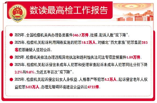 【解讀】“‘強(qiáng)化檢察監(jiān)督’是貫穿報(bào)告始終的一條主線。”楊劍波介紹說(shuō),持續(xù)提升法律監(jiān)督質(zhì)效,推動(dòng)刑事、民事、行政、公益訴訟“四大檢察”全面協(xié)調(diào)充分發(fā)展。2025年,最高檢為精準(zhǔn)監(jiān)督趨利性執(zhí)法司法問(wèn)題,逐步建立了一套從線索發(fā)現(xiàn)、線索研判到督辦交辦、辦結(jié)反饋的全流程機(jī)制。截至2025年12月,最高檢、省級(jí)檢察院督辦重點(diǎn)案件505件。在推進(jìn)專(zhuān)項(xiàng)監(jiān)督中,注重監(jiān)督糾正經(jīng)營(yíng)主體和人民群眾反映強(qiáng)烈的突出問(wèn)題,注重從制度機(jī)制層面剖析根源、堵住漏洞,推動(dòng)實(shí)現(xiàn)標(biāo)本兼治,鞏固深化監(jiān)督成果。研究起草依法加強(qiáng)刑事訴訟查封、扣押、凍結(jié)等強(qiáng)制措施監(jiān)督工作的規(guī)范性文件,建立健全加強(qiáng)跨省涉企刑事案件法律監(jiān)督機(jī)制,努力從源頭上推動(dòng)解決違規(guī)異地執(zhí)法和趨利性執(zhí)法司法問(wèn)題。