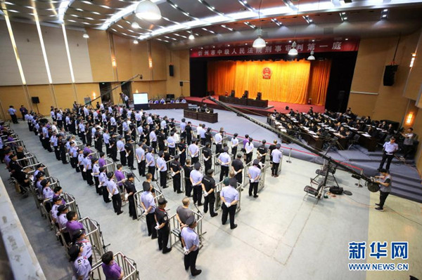 山西省忻州市中級(jí)人民法院依法公開(kāi)開(kāi)庭審理被告人朱強(qiáng)等59人涉嫌黑社會(huì)性質(zhì)組織一案(2019年6月24日攝)。新華社發(fā)