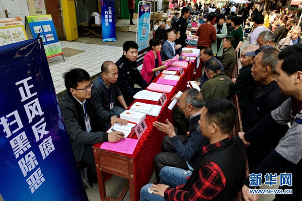 2018年4月1日,福建省建甌市接訪(fǎng)工作人員在小橋鎮(zhèn)墟日上接受群眾來(lái)訪(fǎng)。建甌市紀(jì)委在反腐“拍蠅”和掃黑除惡專(zhuān)項(xiàng)斗爭(zhēng)中,將治理黨員干部涉黑涉惡?jiǎn)栴}作為整治群眾身邊腐敗問(wèn)題的重要工作,通過(guò)專(zhuān)項(xiàng)巡察和下鄉(xiāng)接訪(fǎng)等方式廣泛聽(tīng)取群眾意見(jiàn),收集問(wèn)題線(xiàn)索,推進(jìn)全面從嚴(yán)治黨向基層延伸。新華社記者張國(guó)俊攝