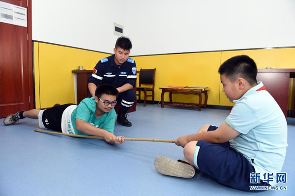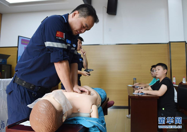 7月15日,在合肥市常青街道姚公社區(qū),合肥市水上應急救援隊的隊員用現(xiàn)場演練的形式為孩子們介紹溺水后自救互救知識?!?/span>