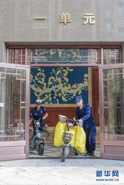 8月1日,消防救援人員在河北省遵化市一住宅小區(qū)樓道清理搬運(yùn)違規(guī)停放的電動(dòng)車。