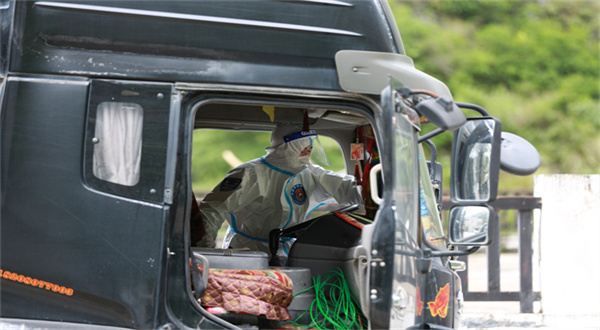 隨著吉隆口岸外貿(mào)企業(yè)復(fù)工復(fù)產(chǎn),口岸逐步恢復(fù)了昔日繁忙景象。連日來,一輛輛載滿貨物的貨車經(jīng)吉隆出入境邊防檢查站執(zhí)勤移民管理警察全面檢查,完成查驗手續(xù)辦理后,順利有序通關(guān)。