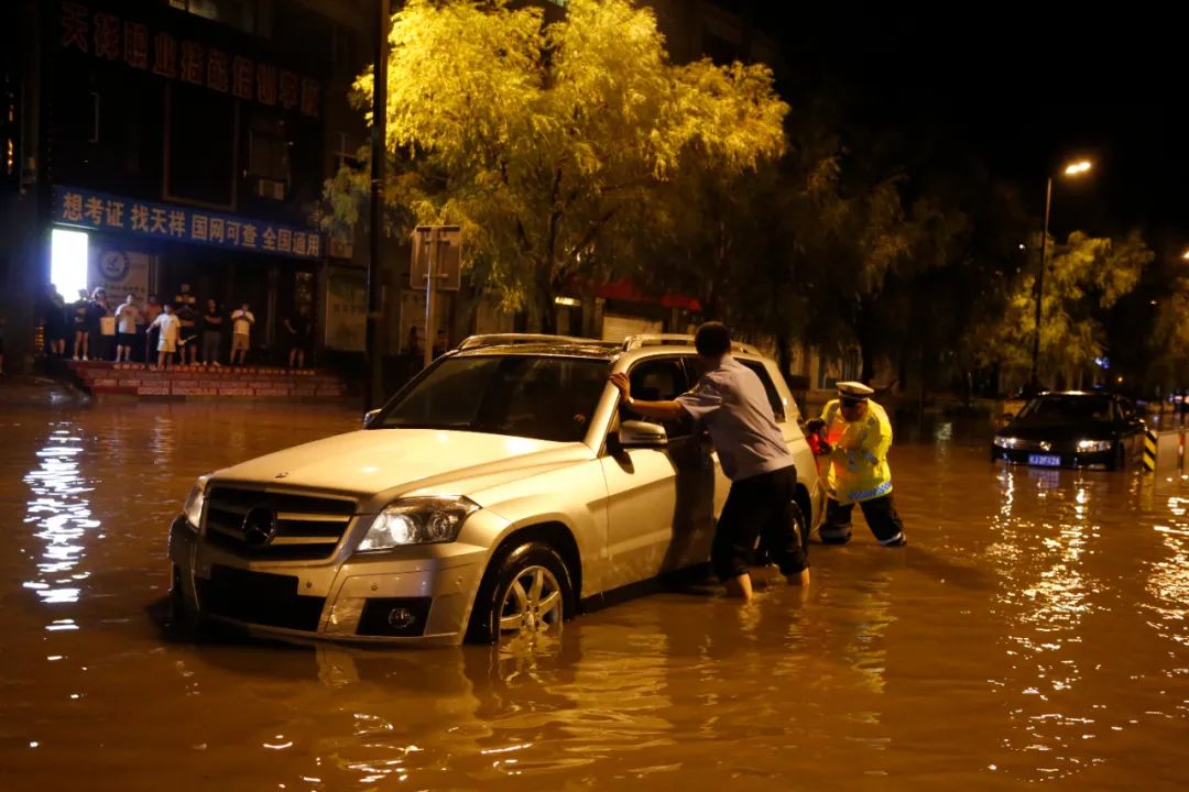 吉林松原公安局民警深入防汛一線 奮力解救被困車輛