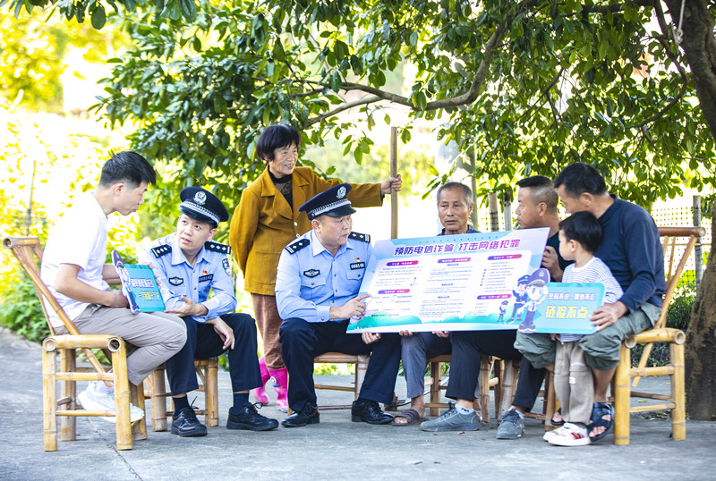 連日來(lái),江西省橫峰縣公安局組織民警深入轄區(qū)農(nóng)村,通過(guò)分發(fā)宣傳手冊(cè)、互動(dòng)答疑、解讀典型案例等形式,向農(nóng)村群眾講解電信網(wǎng)絡(luò)詐騙的常見(jiàn)套路和防騙知識(shí),進(jìn)一步提高農(nóng)村群體的反詐防騙意識(shí)和能力。圖為10月24日民警進(jìn)村入戶開(kāi)展反詐宣傳。 本報(bào)記者 黃輝 本報(bào)通訊員 薛南 攝