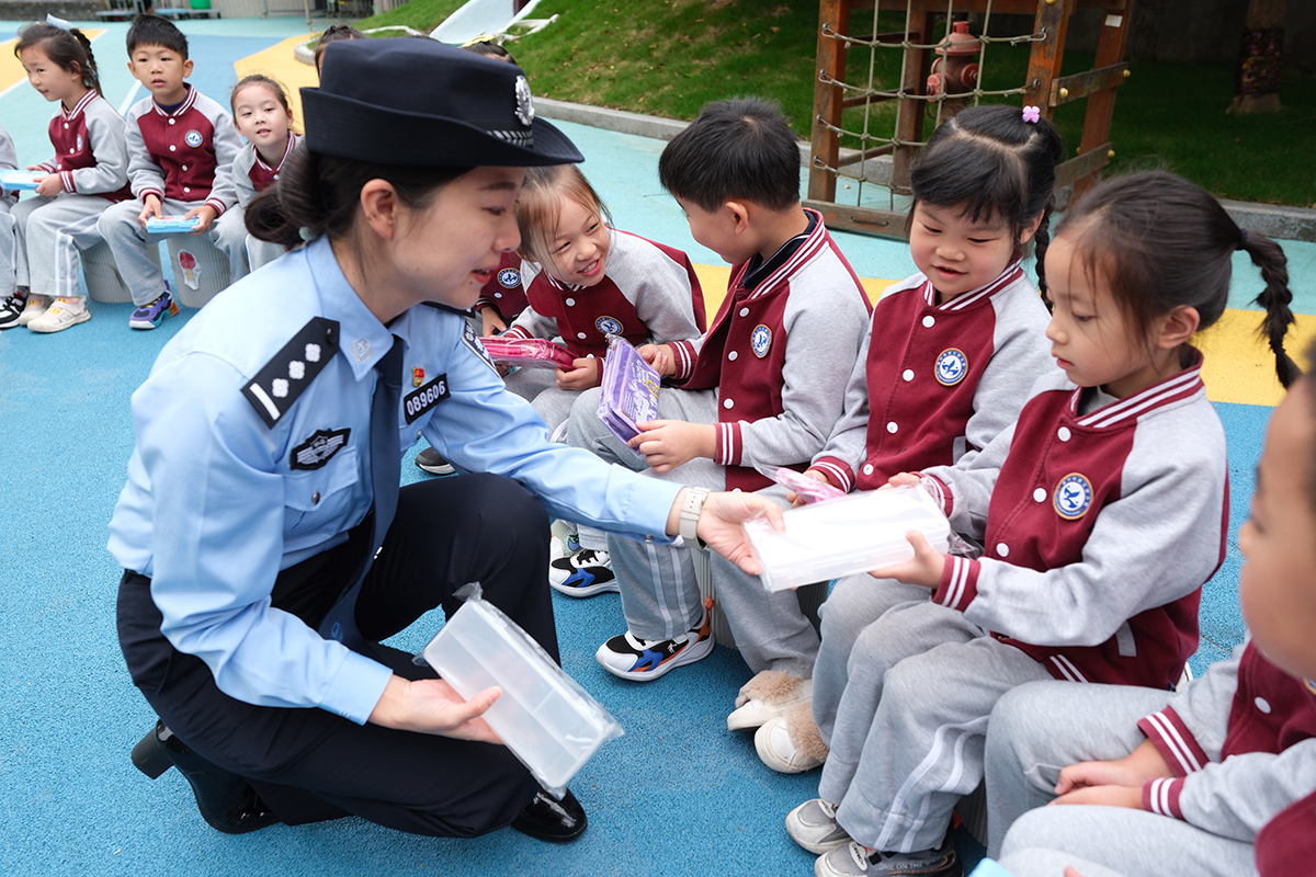 近日,杭州鐵路公安處嘉興站派出所民警組成愛(ài)路護(hù)路宣傳小分隊(duì),來(lái)到嘉興市第三幼兒園開(kāi)展安全宣傳活動(dòng)。圖為民警向小朋友講解鐵路安全及乘車安全知識(shí)。 本報(bào)通訊員 賀瑞明 徐燁 攝