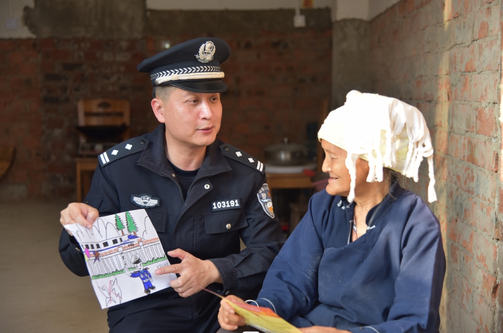 近日,南寧鐵路公安局北海公安處五象南站派出所民警進(jìn)村入戶,通過一幅幅自繪水彩畫,向村民宣傳鐵路安全與防詐反詐等知識(shí)。圖為民警向群眾宣傳鐵路安全知識(shí)。 本報(bào)通訊員 廖才立 攝