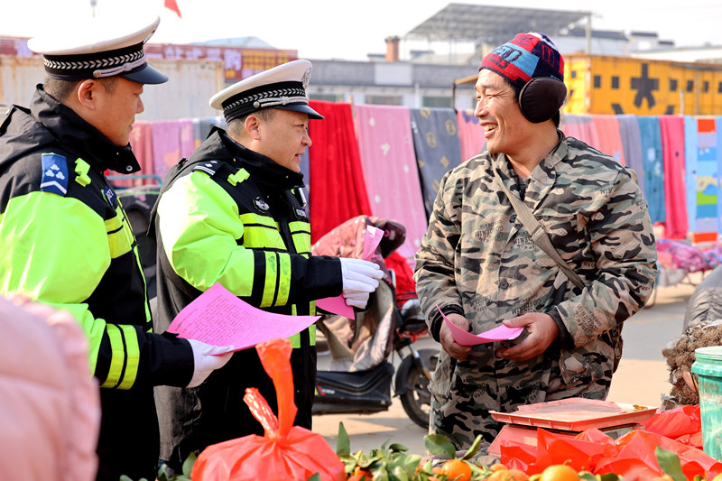 山東棗莊市公安局市中分局交通警察大隊開展“鄉(xiāng)村‘年集’講安全”活動