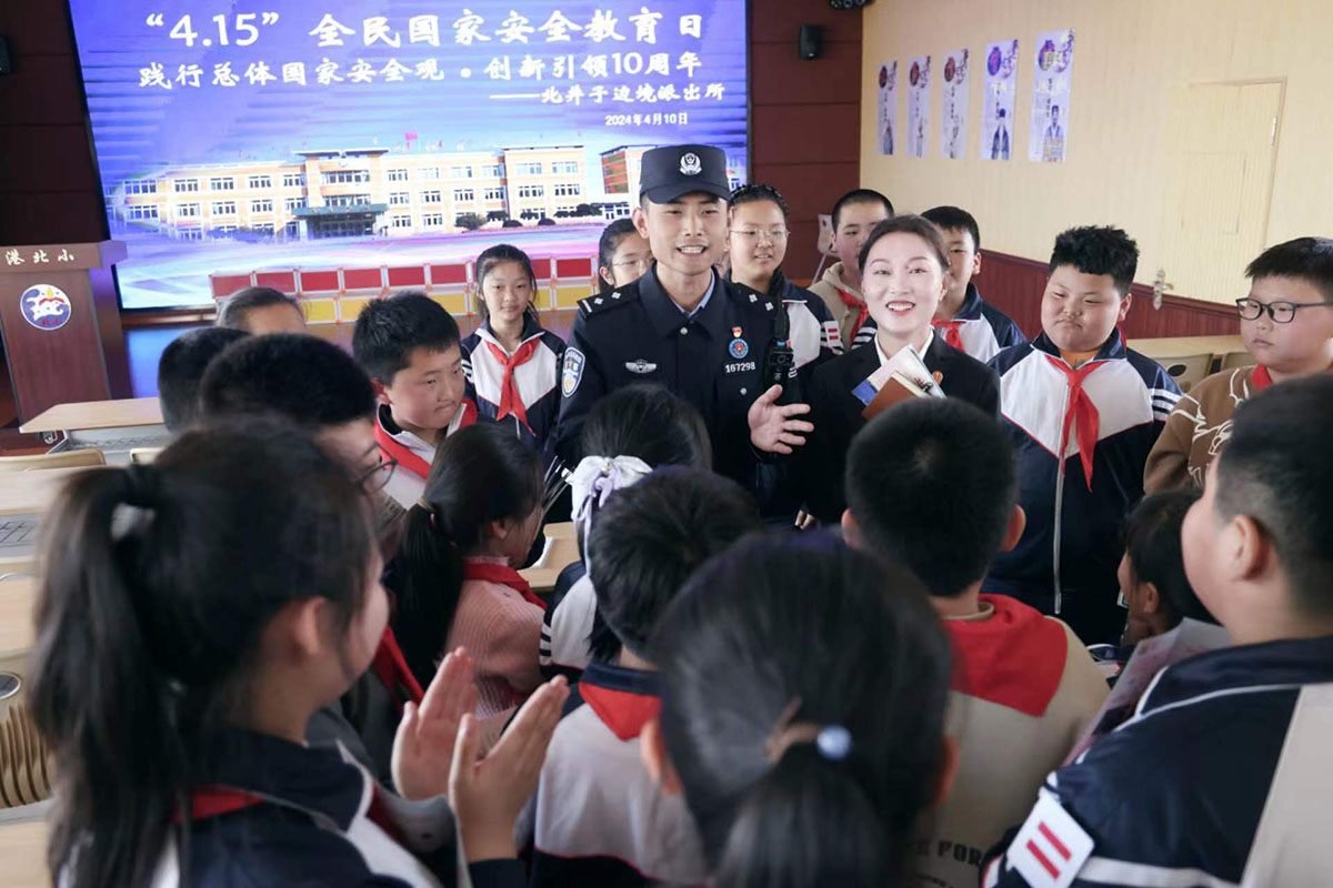 近日,遼寧出入境邊防檢查總站丹東邊境管理支隊北井子邊境派出所聯(lián)合黨建共建單位,深入轄區(qū)學校,開展普法宣傳。圖為民警與法院工作人員為學生普及防范校園欺凌相關(guān)法律知識。