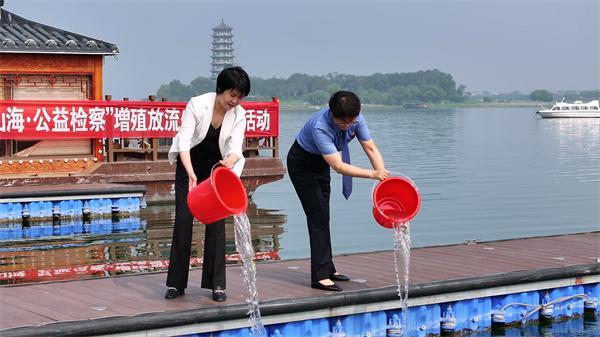 為推進(jìn)“燕趙山?!す鏅z察”護(hù)航美麗河北建設(shè)專項監(jiān)督繼續(xù)走深走實,河北省磁縣人民檢察院近日邀請縣政協(xié)委員在溢泉湖濕地公園開展增殖放流活動。圖為檢察干警和政協(xié)委員放生鰱鳙魚苗。