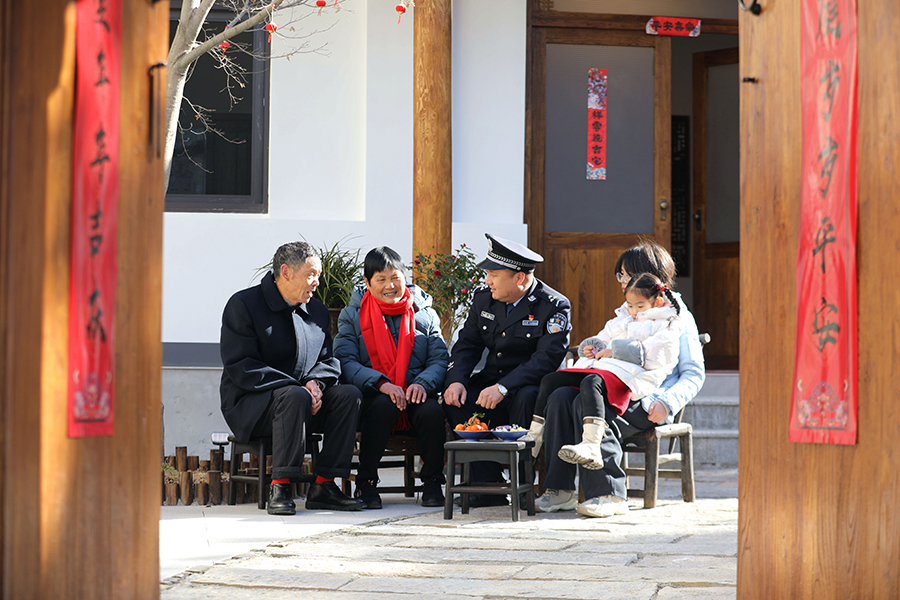 近日,安徽省舒城縣公安局山七派出所駐村輔警深入轄區(qū)村莊進(jìn)行入戶走訪,開展法治宣傳。圖為活動(dòng)現(xiàn)場(chǎng)。