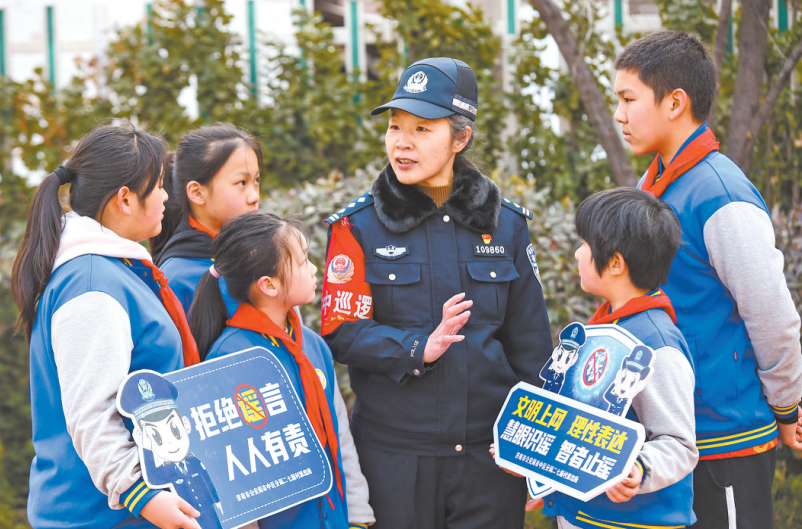 2月21日,山東省濟南市公安局市中分局二七新村派出所社區(qū)民警來到育明小學,開展“安全上網 護苗成長”網絡安全宣傳教育活動。圖為活動現(xiàn)場。