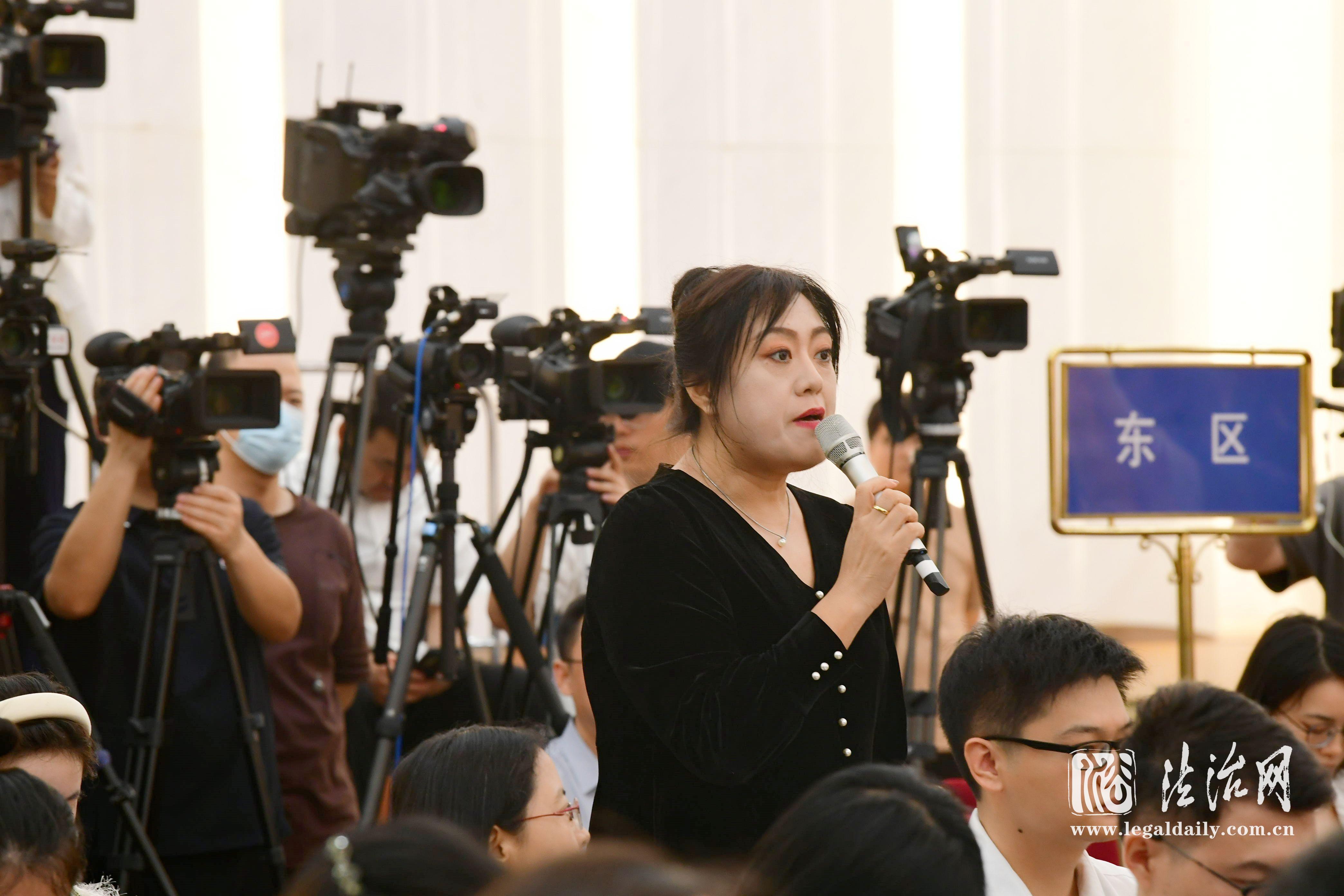 9月13日下午,全國人大常委會辦公廳舉行新聞發(fā)布會。圖為法治日報記者提問。張峻銘 攝