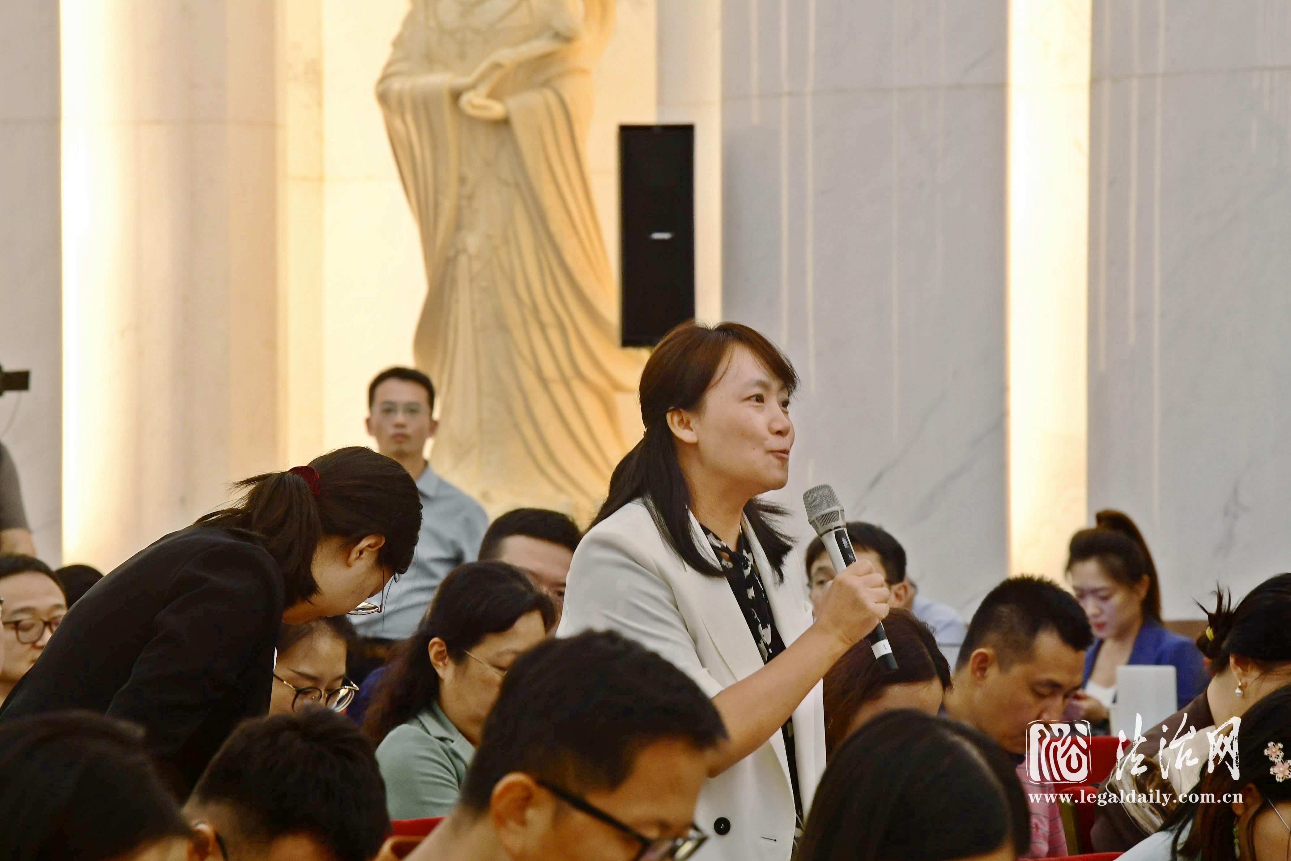 9月13日下午,全國人大常委會辦公廳舉行新聞發(fā)布會。圖為工人日報記者提問。張峻銘 攝