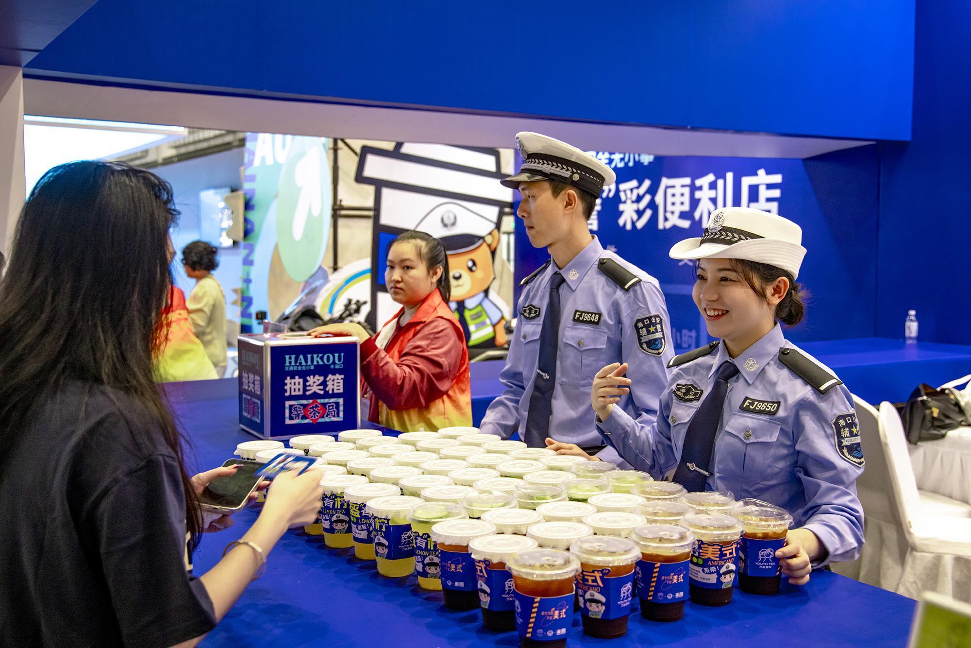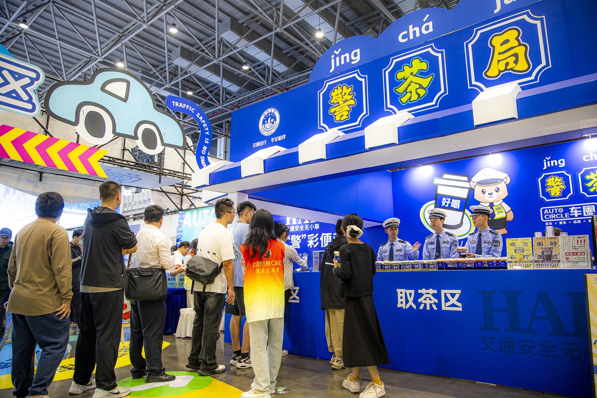 走進(jìn)1號展館,“警茶局”創(chuàng)意攤位前排起長龍。市民掃描二維碼參與“交通安全快測”答題,答對6題即可兌換限量特調(diào)飲品——清新檸檬茶“幸盔有檸”杯身印有醒目戴頭盔安全提示,咖啡特調(diào)“系好美式”以安全帶印制“系好安全帶,平安出發(fā)”標(biāo)語,巧妙融合普法知識點(diǎn)。交警化身“茶飲師”為市民送上安全特調(diào)飲品,貼心叮囑出行安全事項(xiàng),警民互動(dòng)其樂融融。