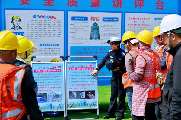 活動中,民警通過現(xiàn)場宣講交通道路安全法、教授電瓶車頭盔正確佩戴方法、模擬酒駕述危害、講述典型案例防詐騙等環(huán)節(jié),為重點工程項目農(nóng)民工上了一堂精彩生動的安全、防詐騙教育課。
