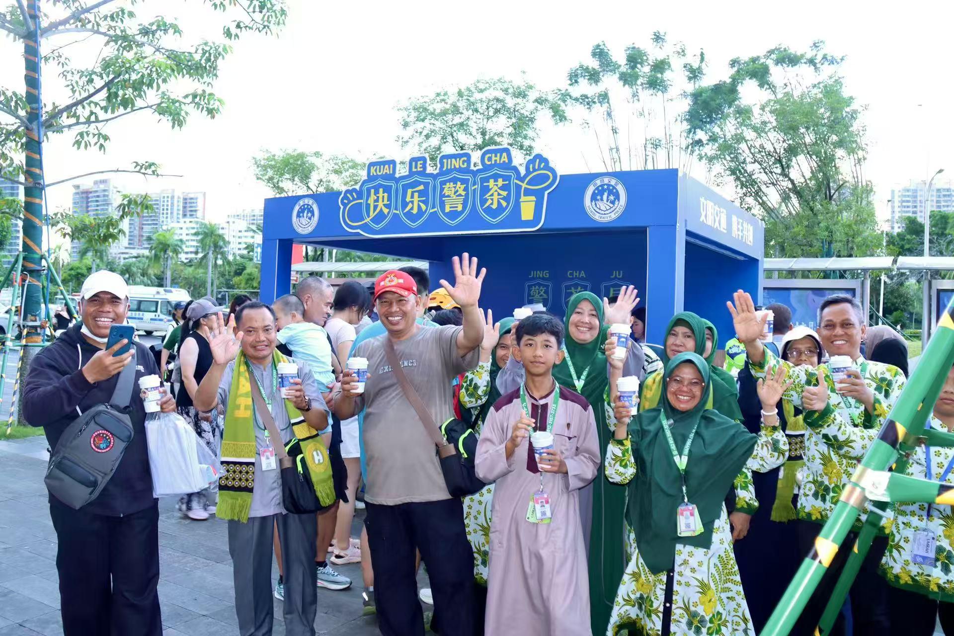 “警茶局”的魅力,還吸引了八方來(lái)客。10月2日下午,來(lái)自印度尼西亞的馬克在導(dǎo)游的幫助下,成功答對(duì)了所有題目。他興奮地舉起手中的“警茶”,為這個(gè)創(chuàng)意活動(dòng)點(diǎn)贊。