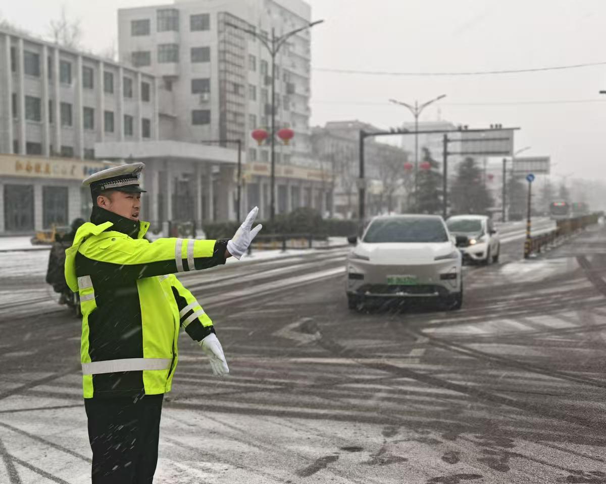 降雪伊始,市區(qū)各勤務(wù)大隊(duì)全體民警、輔警迅速進(jìn)入戰(zhàn)時(shí)狀態(tài),大隊(duì)領(lǐng)導(dǎo)帶頭沖鋒,分赴轄區(qū)各主要路口、路段指揮調(diào)度。開封交警采取“定點(diǎn)值守+動態(tài)巡邏”相結(jié)合的勤務(wù)模式,加大巡查頻次和密度,實(shí)時(shí)掌握路面狀況。針對降雪導(dǎo)致的車輛緩行,開封交警靈活調(diào)配警力,在關(guān)鍵節(jié)點(diǎn)加強(qiáng)指揮疏導(dǎo),實(shí)施遠(yuǎn)端分流,有效防止了長時(shí)間、大面積交通擁堵。風(fēng)雪中,民警們一遍遍提醒過往車輛謹(jǐn)慎駕駛,及時(shí)處置各類突發(fā)情況。雪花浸濕了衣衫,他們卻用不變的堅(jiān)守,在城區(qū)道路上筑起了一道堅(jiān)實(shí)的安全防線,守護(hù)著市民的平安出行。