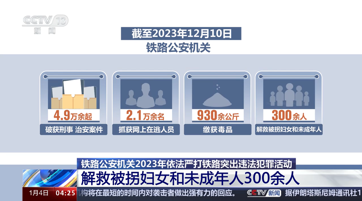 鐵路公安機關2023年依法嚴打鐵路突出違法犯罪活動 解救被拐婦女和未成年人300余人