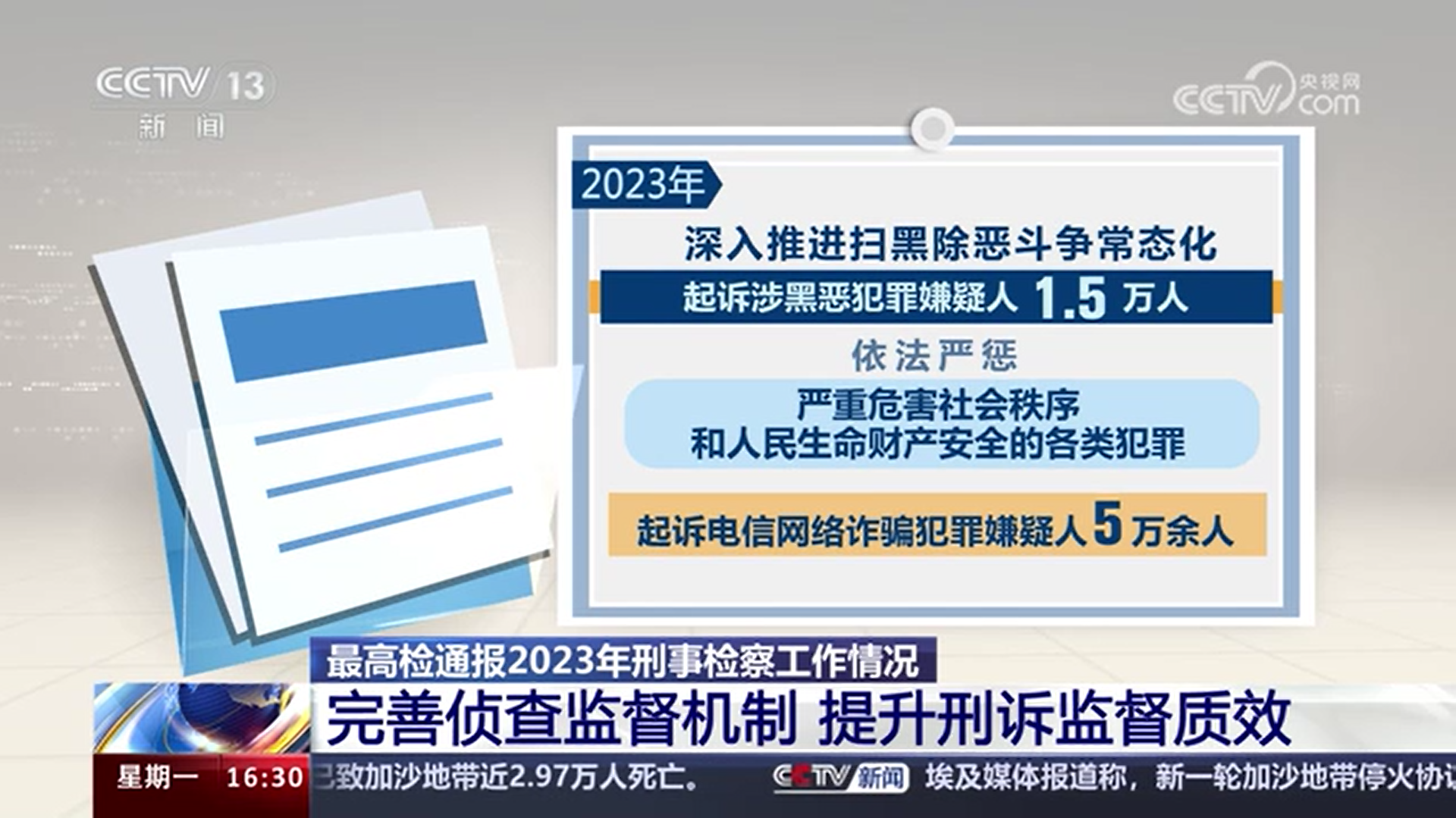 最高檢通報(bào)2023年刑事檢察工作情況 完善偵查監(jiān)督機(jī)制 提升刑訴監(jiān)督質(zhì)效
