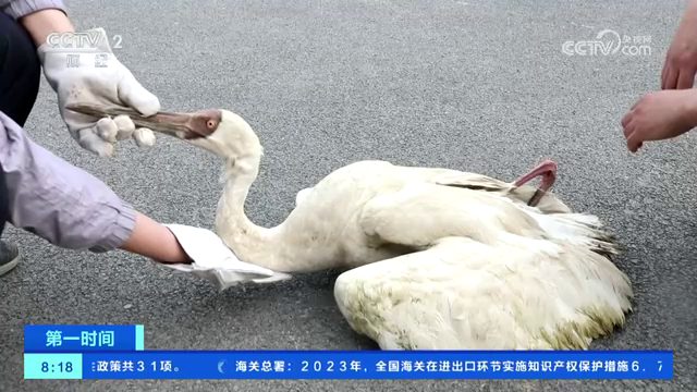 山東廣饒:警民合力救助受傷白鶴