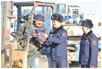 圖為遼寧出入境邊防檢查總站丹東邊境管理支隊新興邊境派出所民警近日深入轄區(qū)碼頭,一邊對上塢船只進行登記檢查,一邊宣傳邊境法規(guī)政策與防范電信網(wǎng)絡(luò)詐騙知識。 鞠鑫 攝