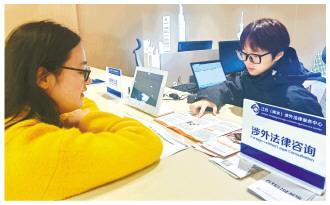 圖為企業(yè)經營人員在江蘇(南京)涉外法律服務中心咨詢涉外法律事務。