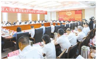 圖為江蘇省南京市建鄴區(qū)人大常委會召開優(yōu)化營商環(huán)境專題詢問會議。
